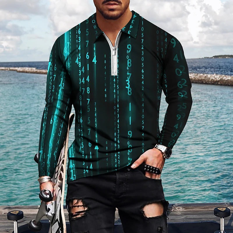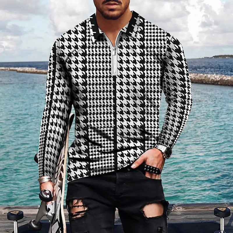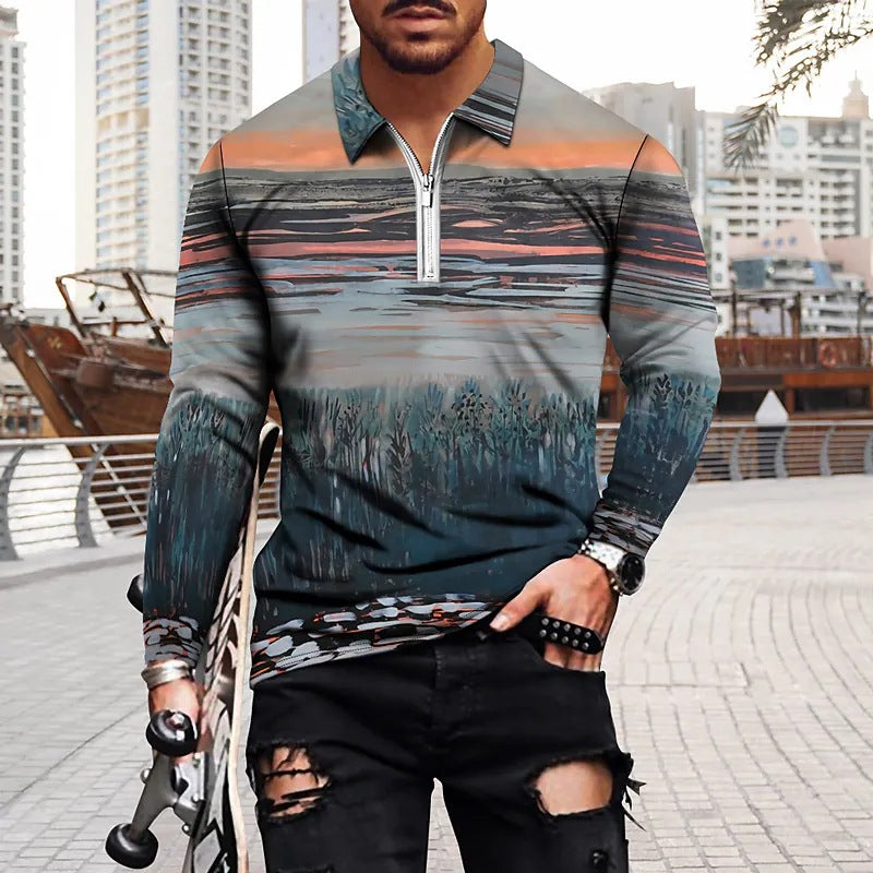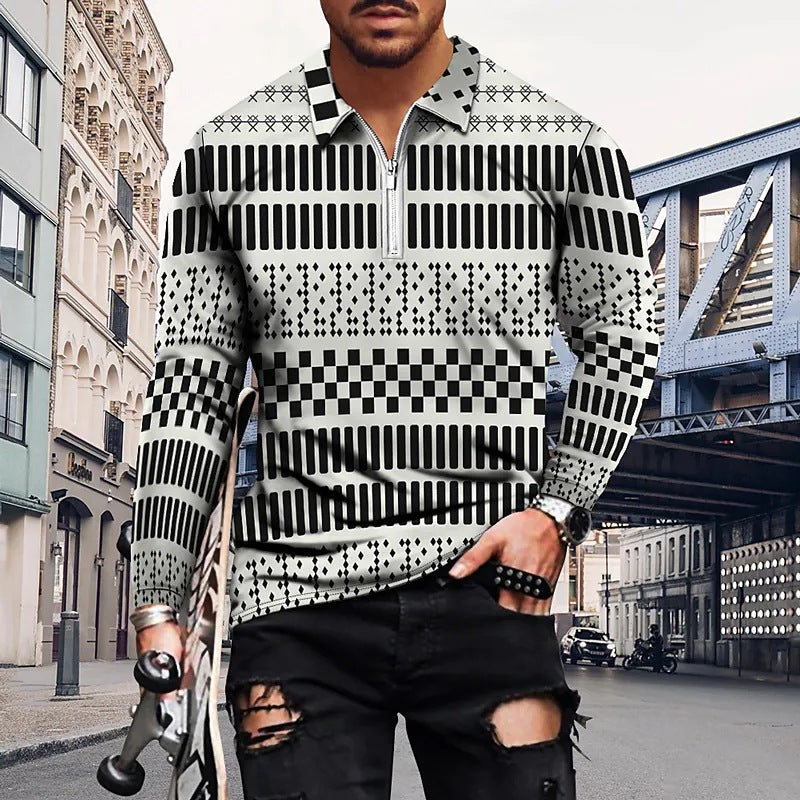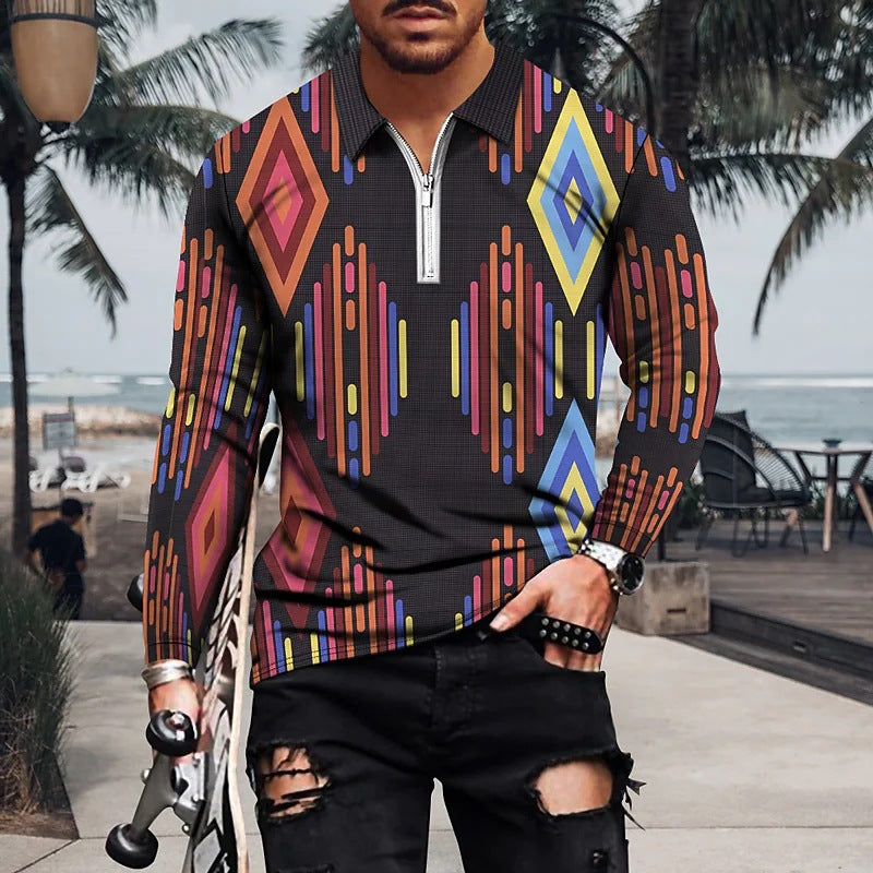 Vintage Print Men's Zip-Up POLO Shirt