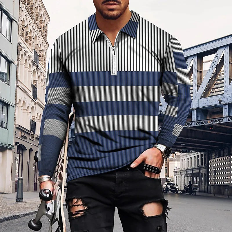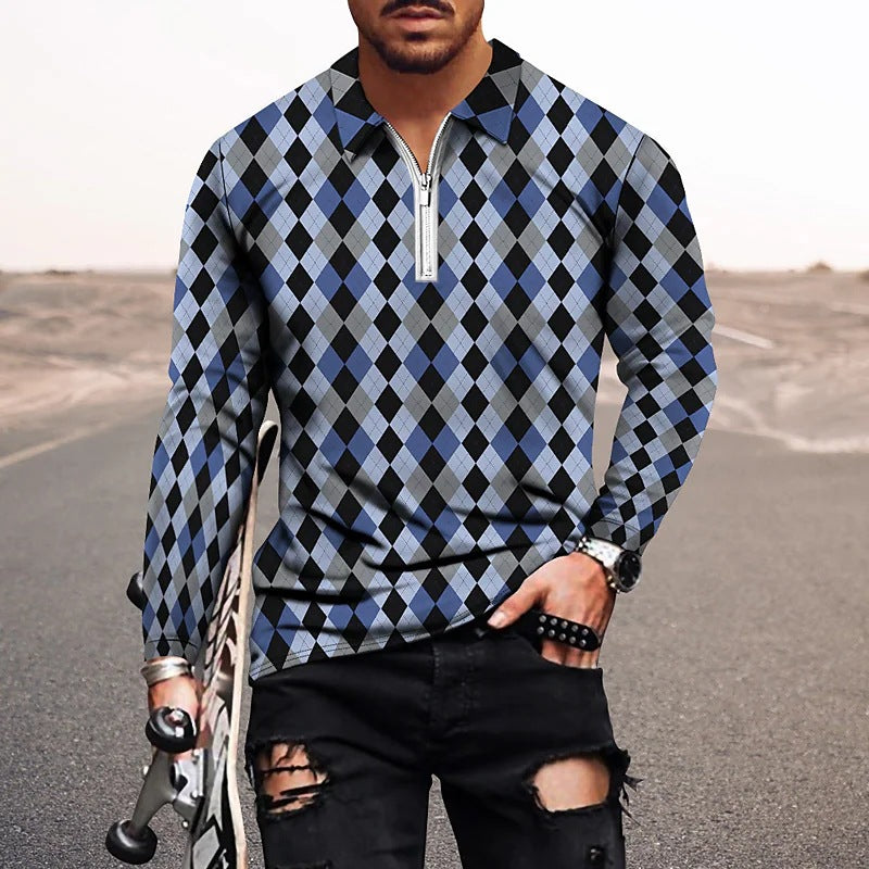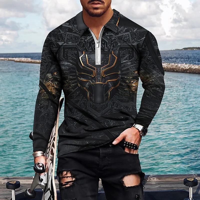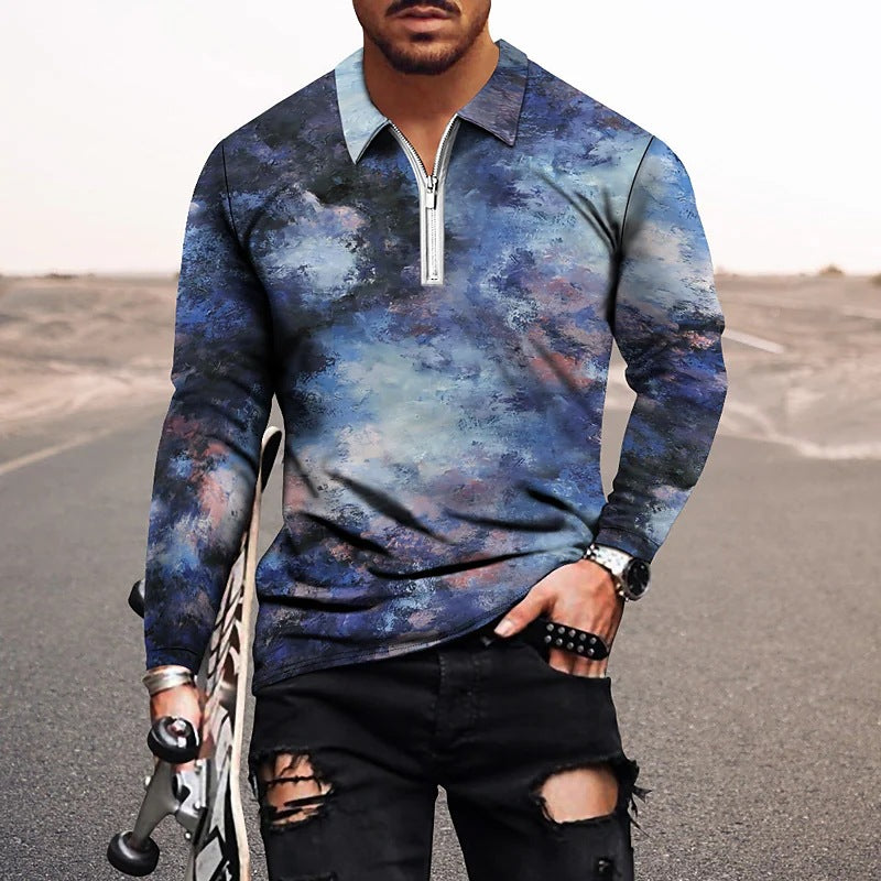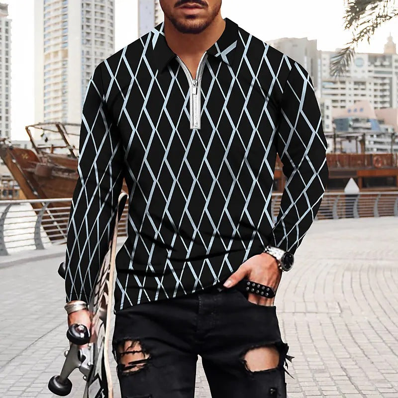 Vintage Print Men's Zip-Up POLO Shirt