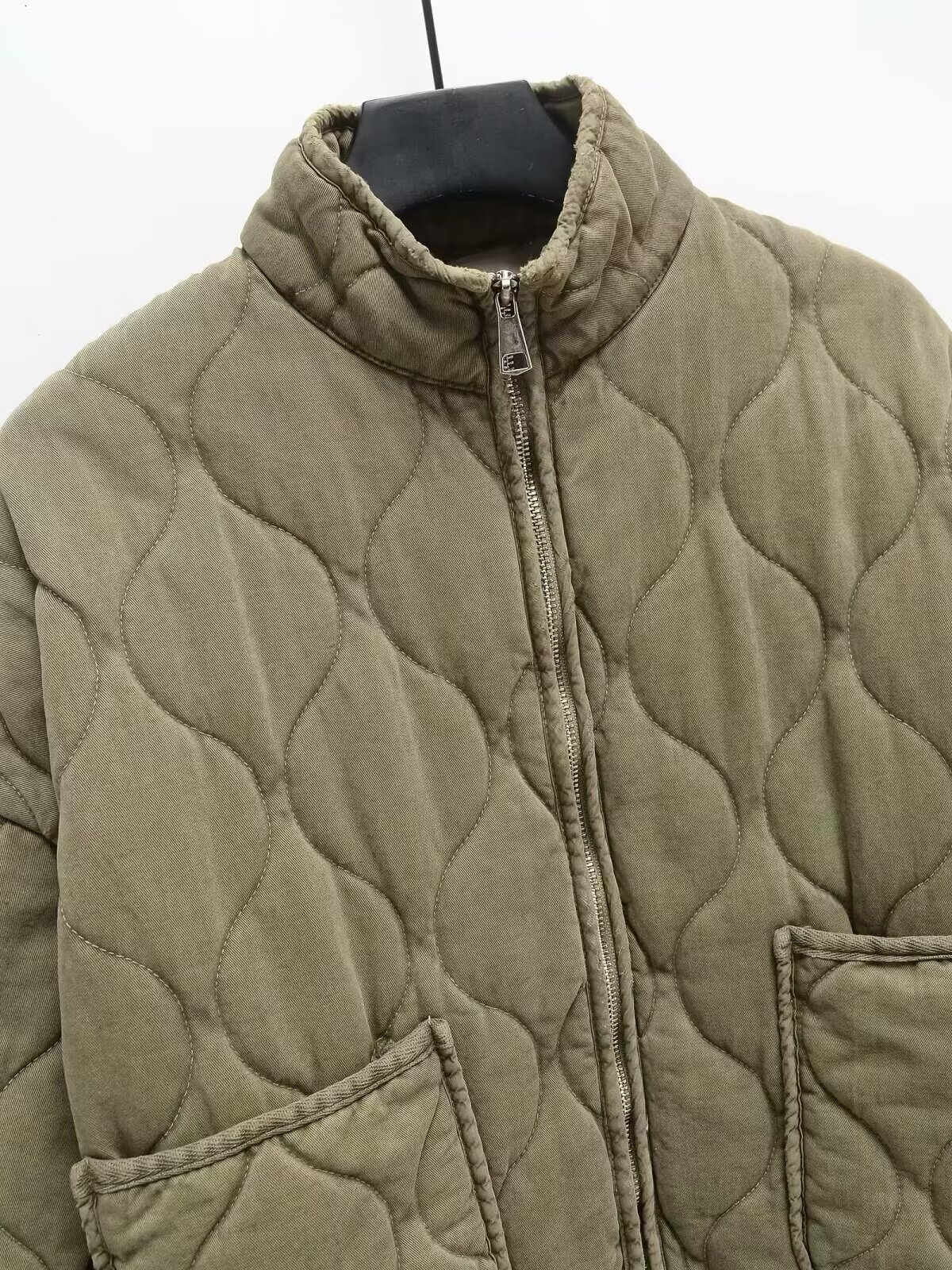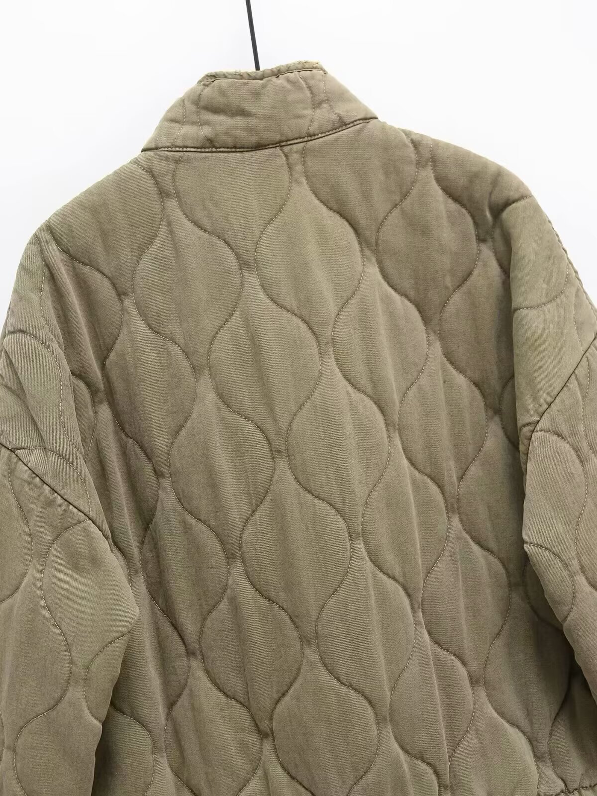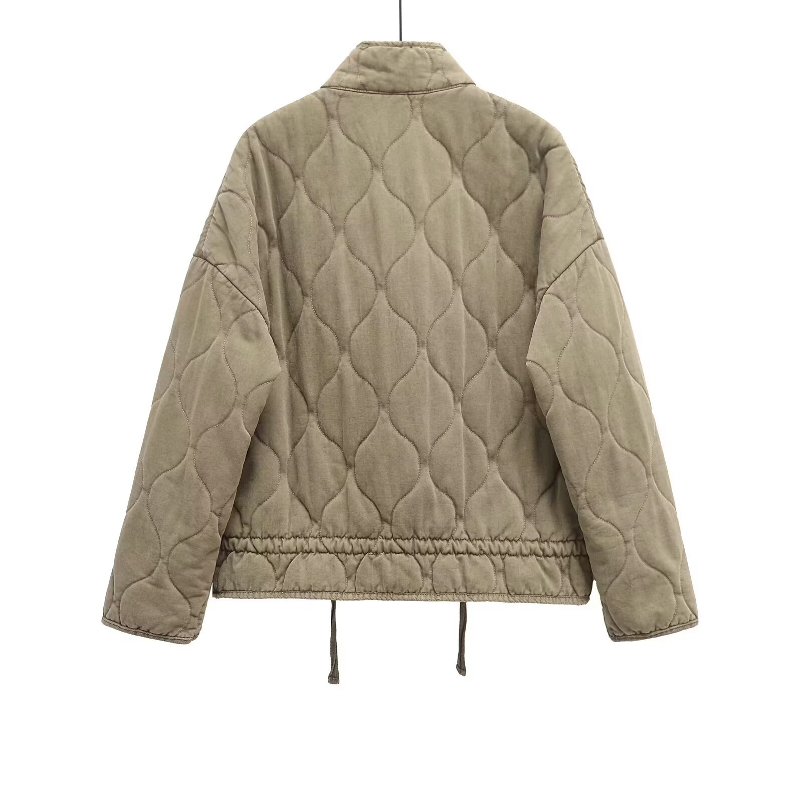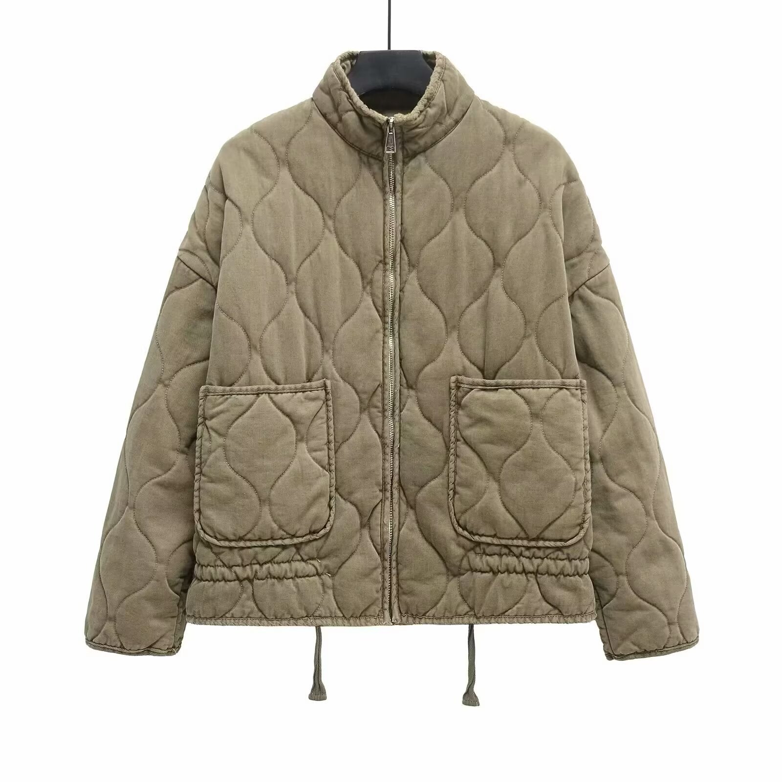 Winter Washed Cotton Jacket With A Diamond-Pattern Stand Collar