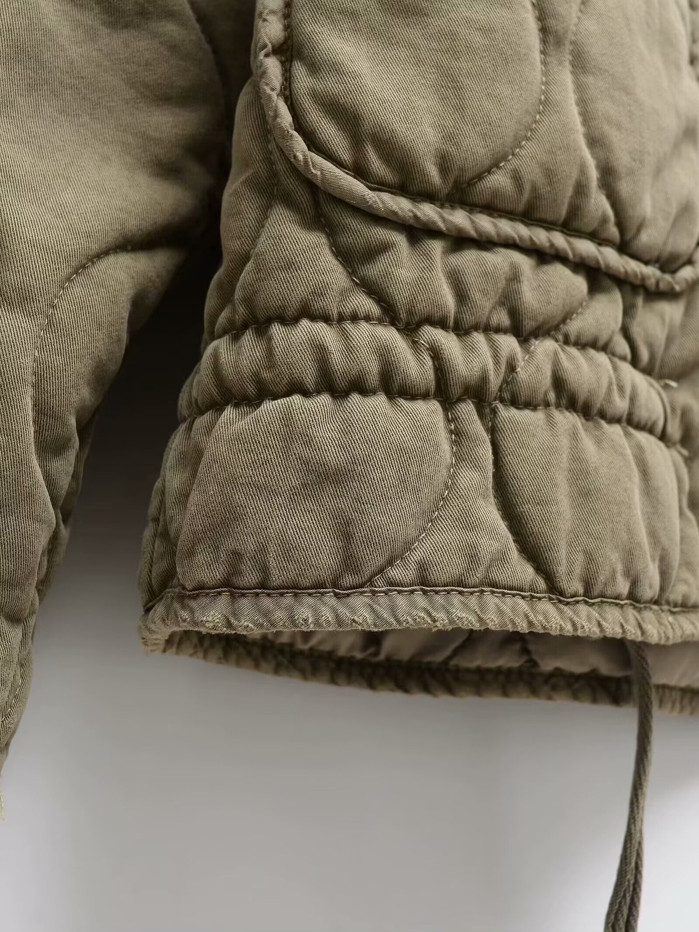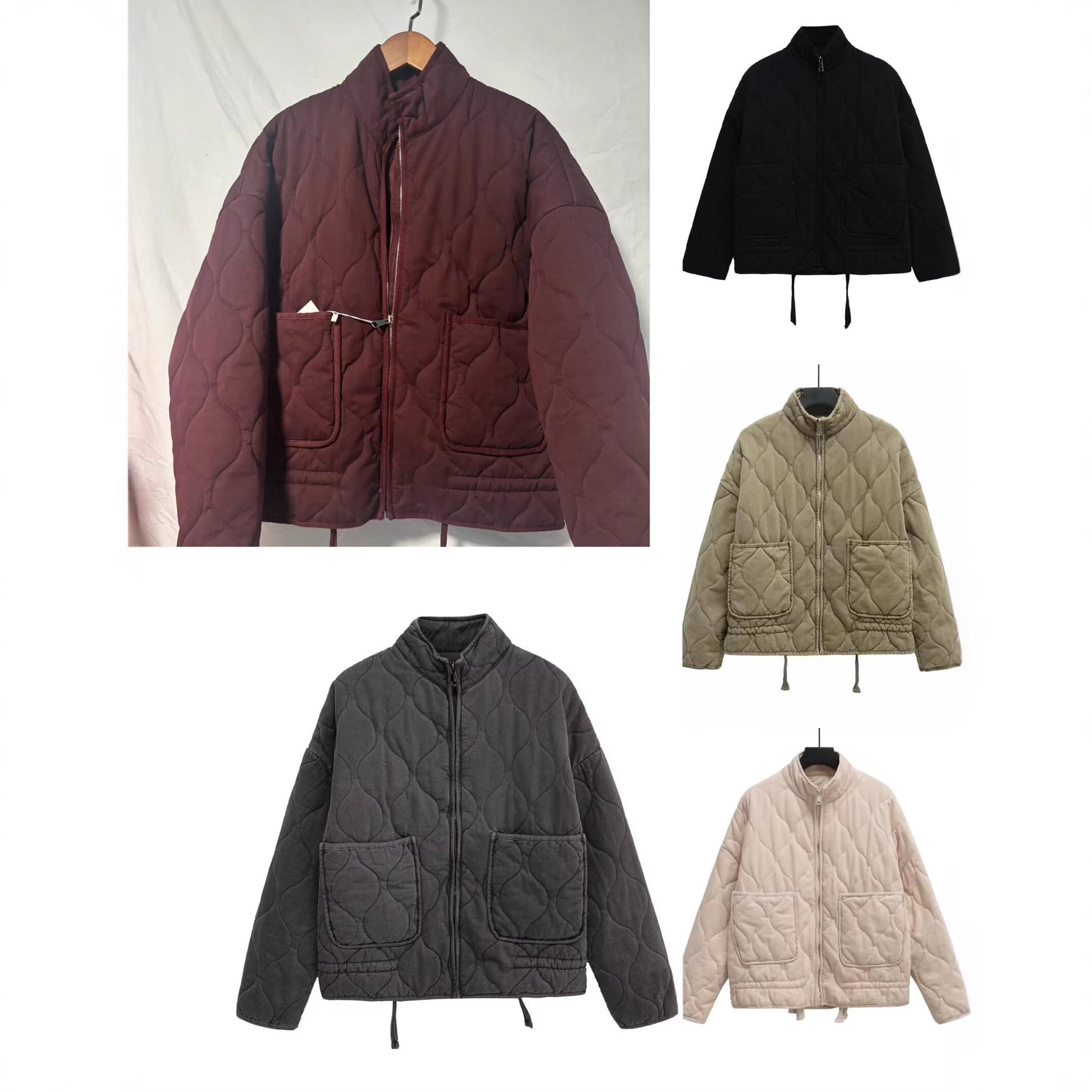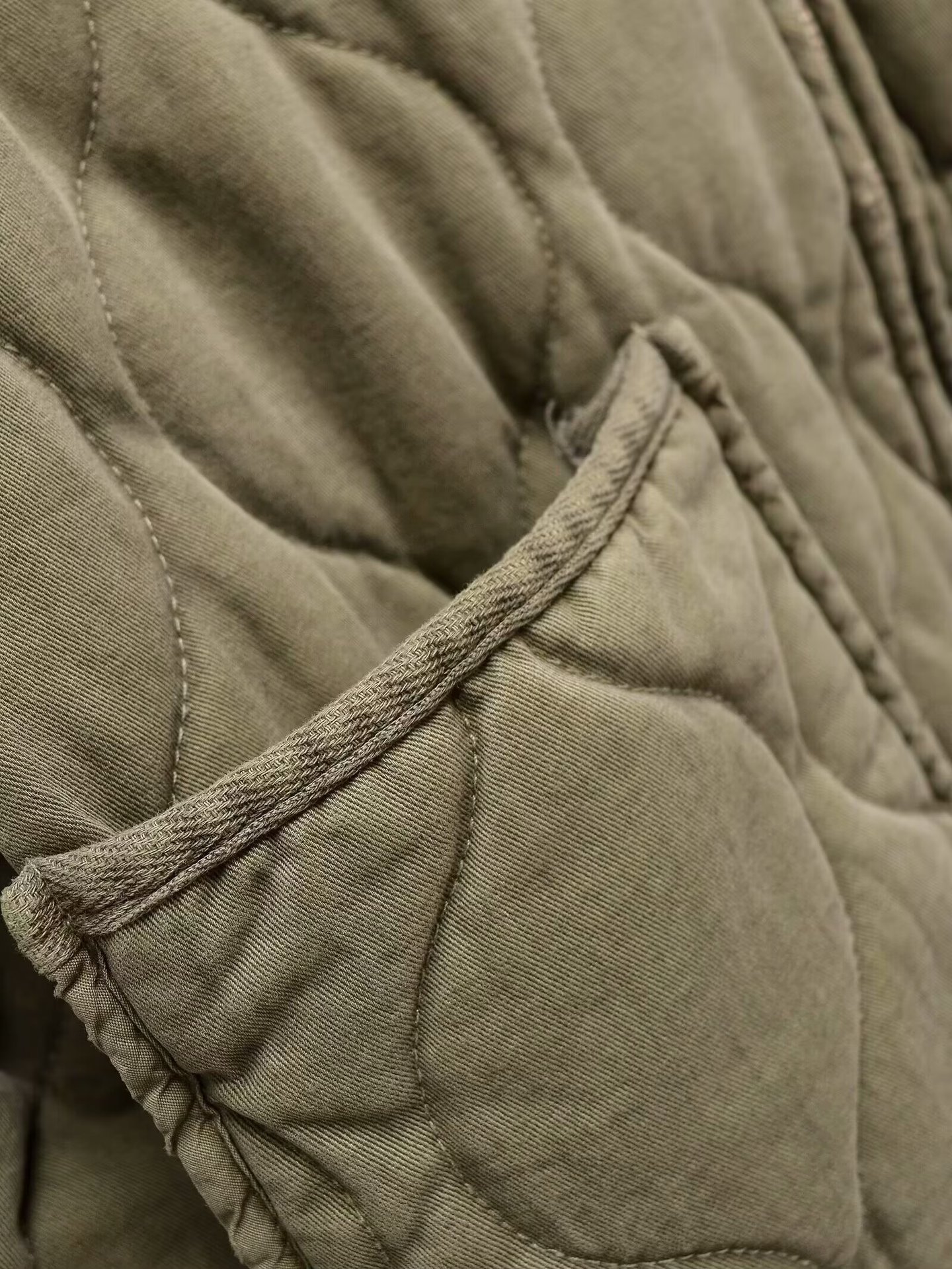 Winter Washed Cotton Jacket With A Diamond-Pattern Stand Collar
