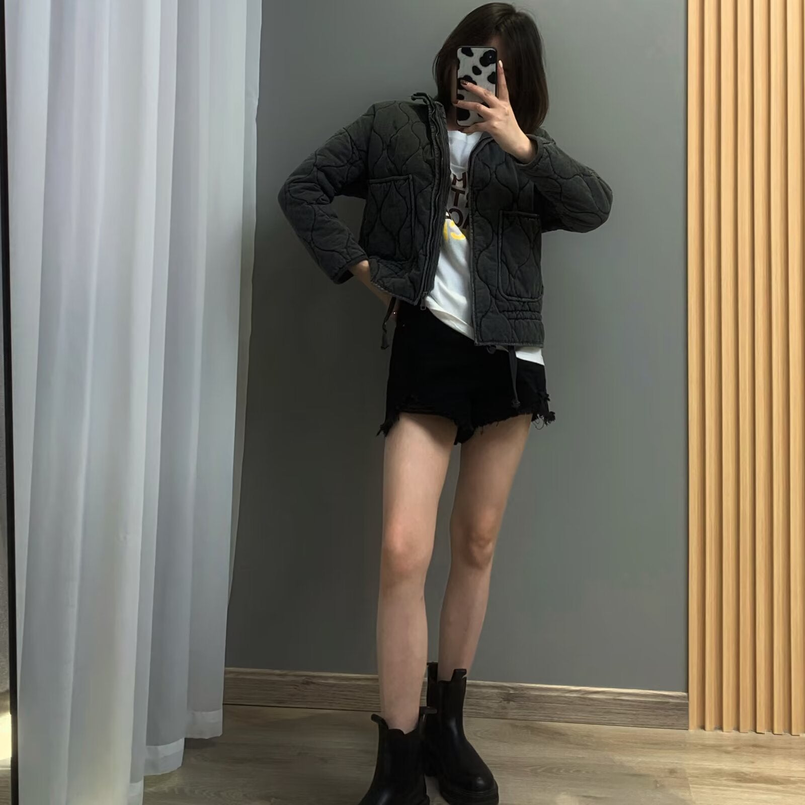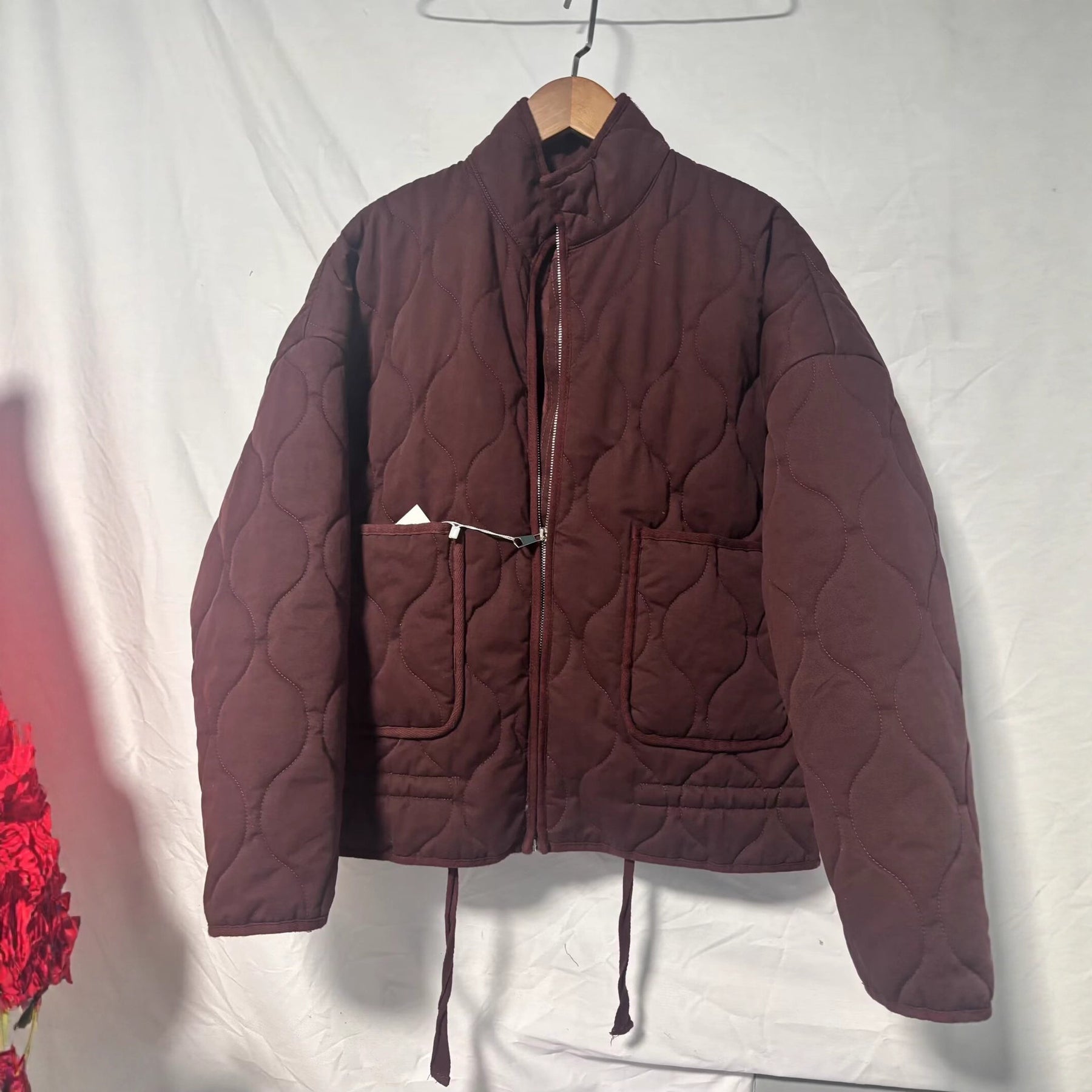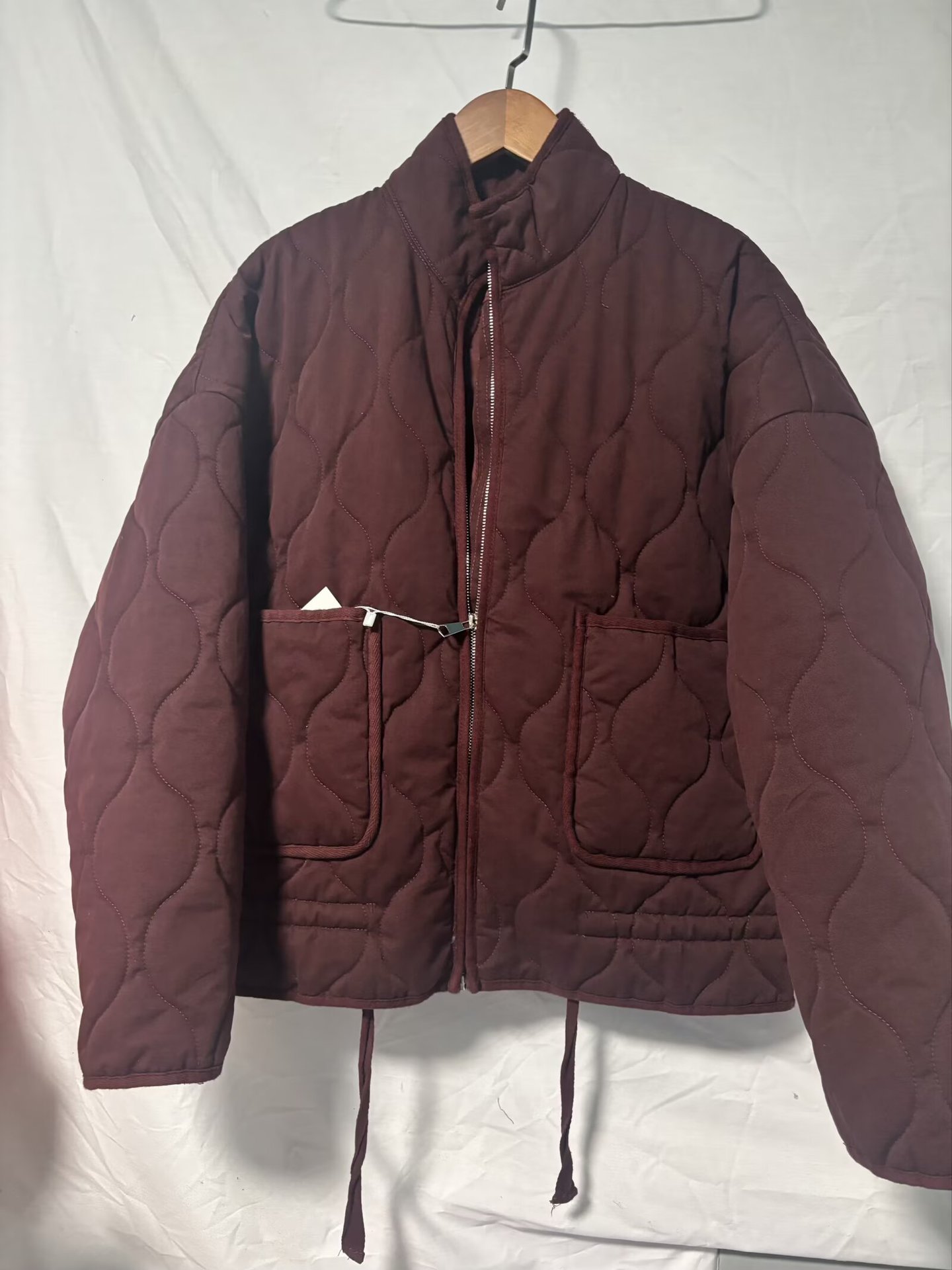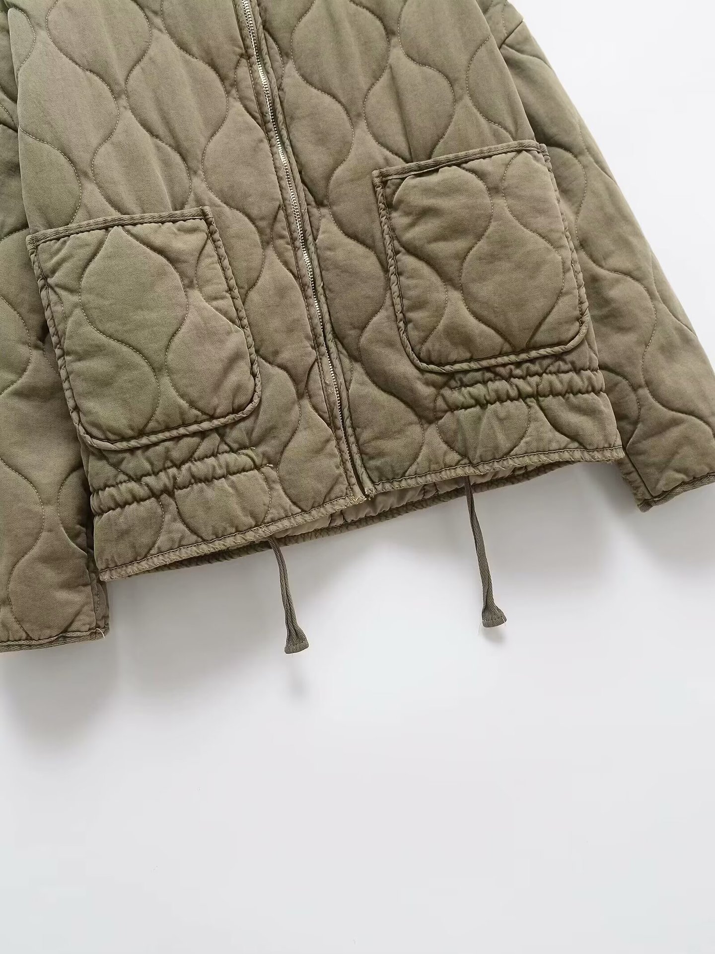 Winter Washed Cotton Jacket With A Diamond-Pattern Stand Collar