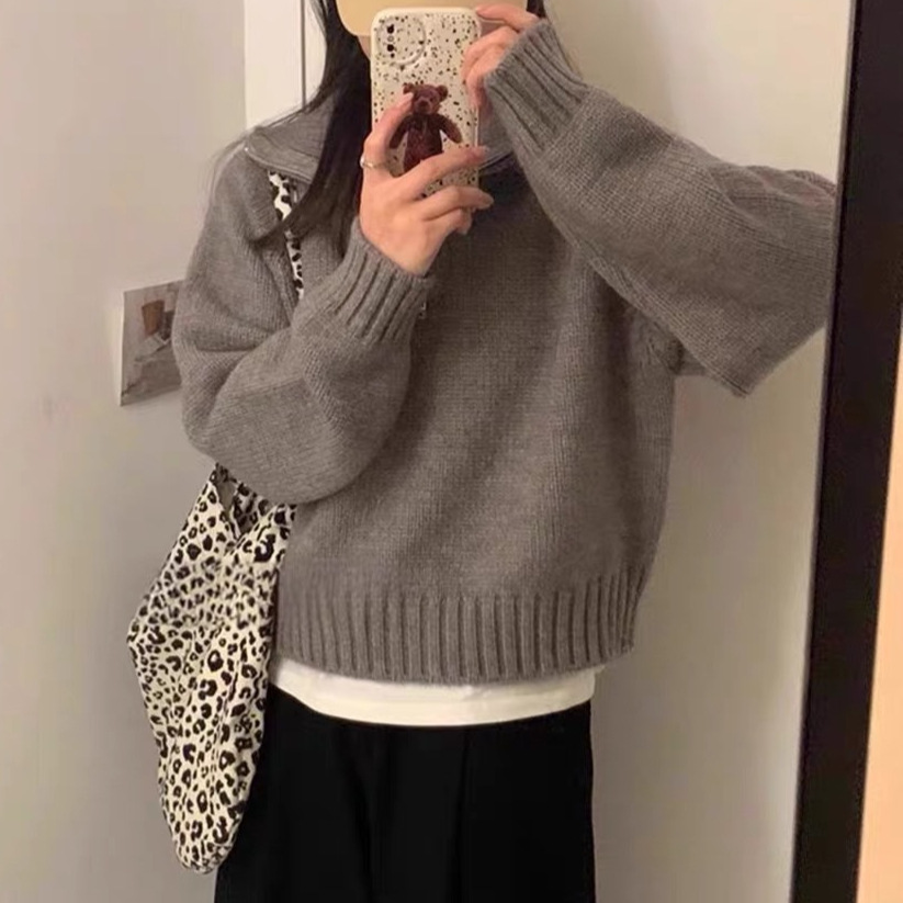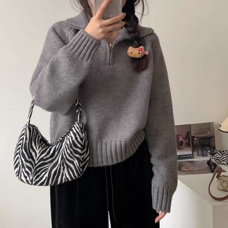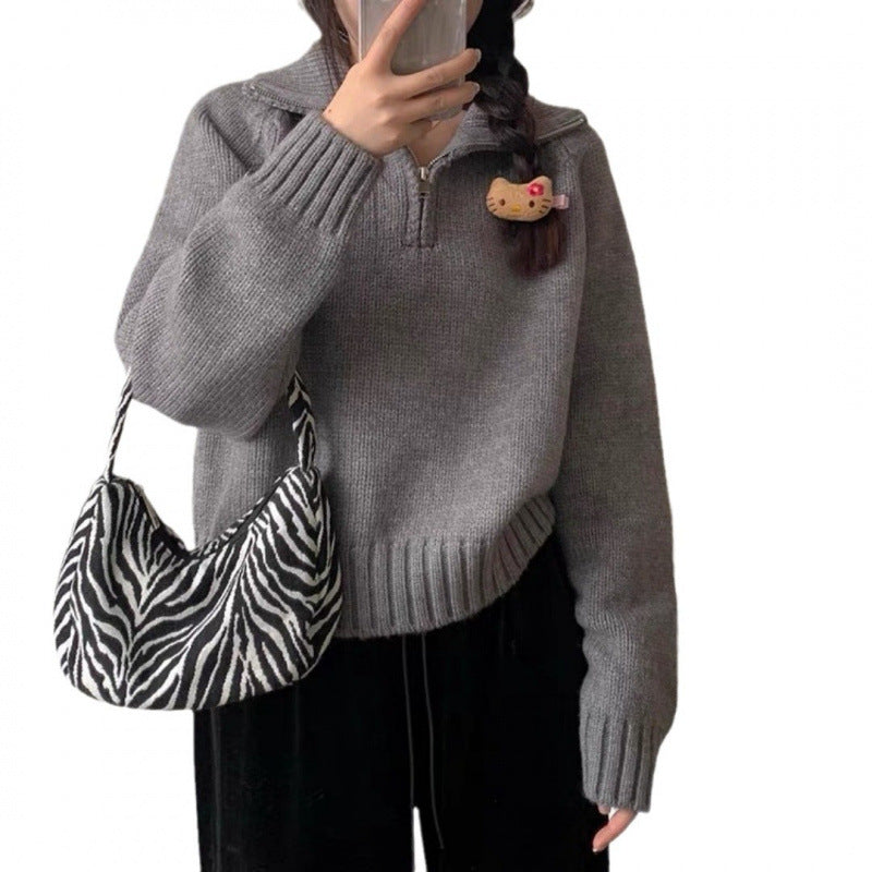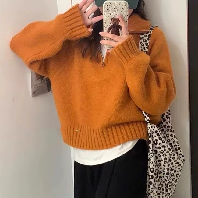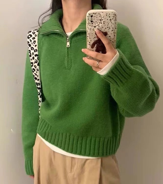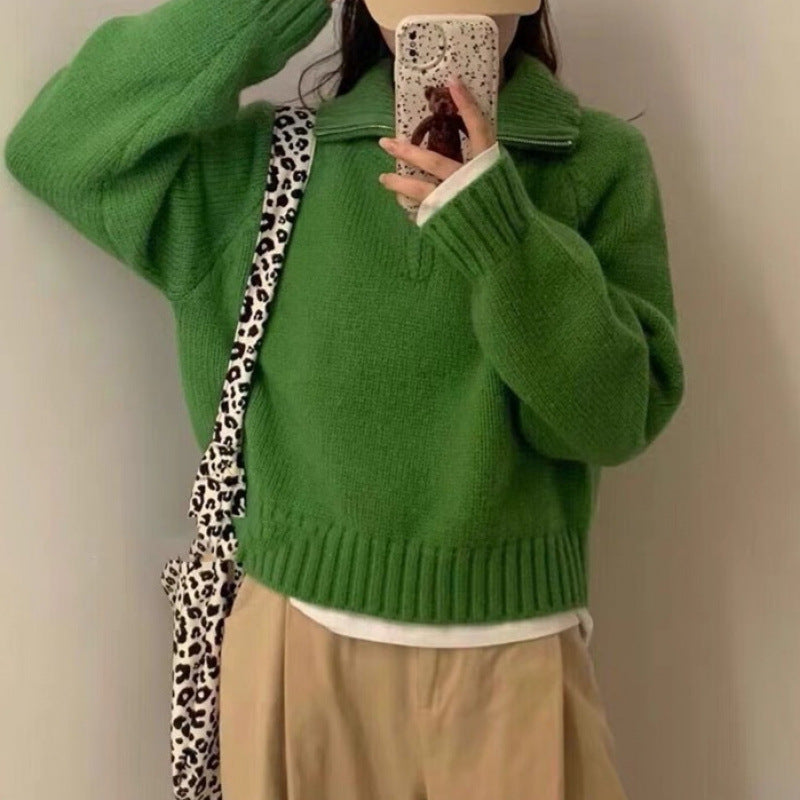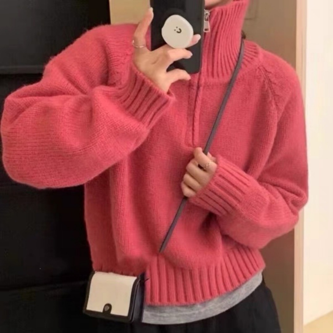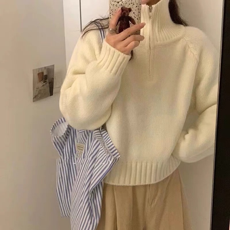 Women's Half Turtleneck Sweet Youthful Loose Half-zip Sweater