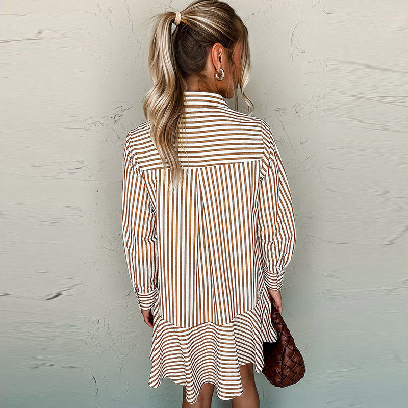 New Polo Collar Commute Minimalist Style Printing Dress Women